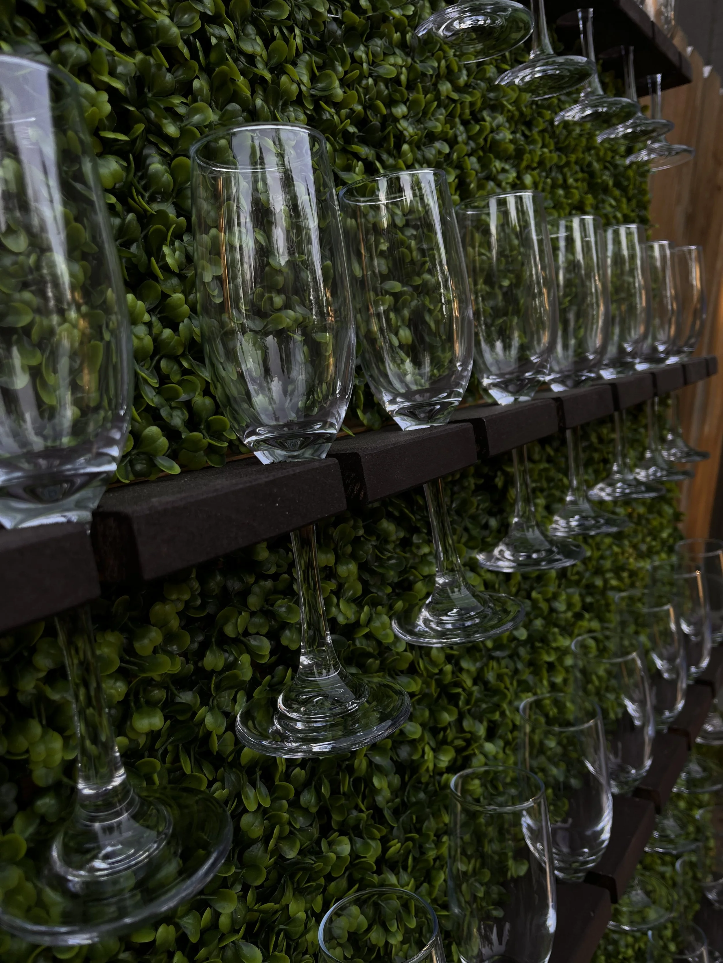 Equipped with 54 glasses, our champagne wall makes the perfect addition to our mobile bar or on its own!