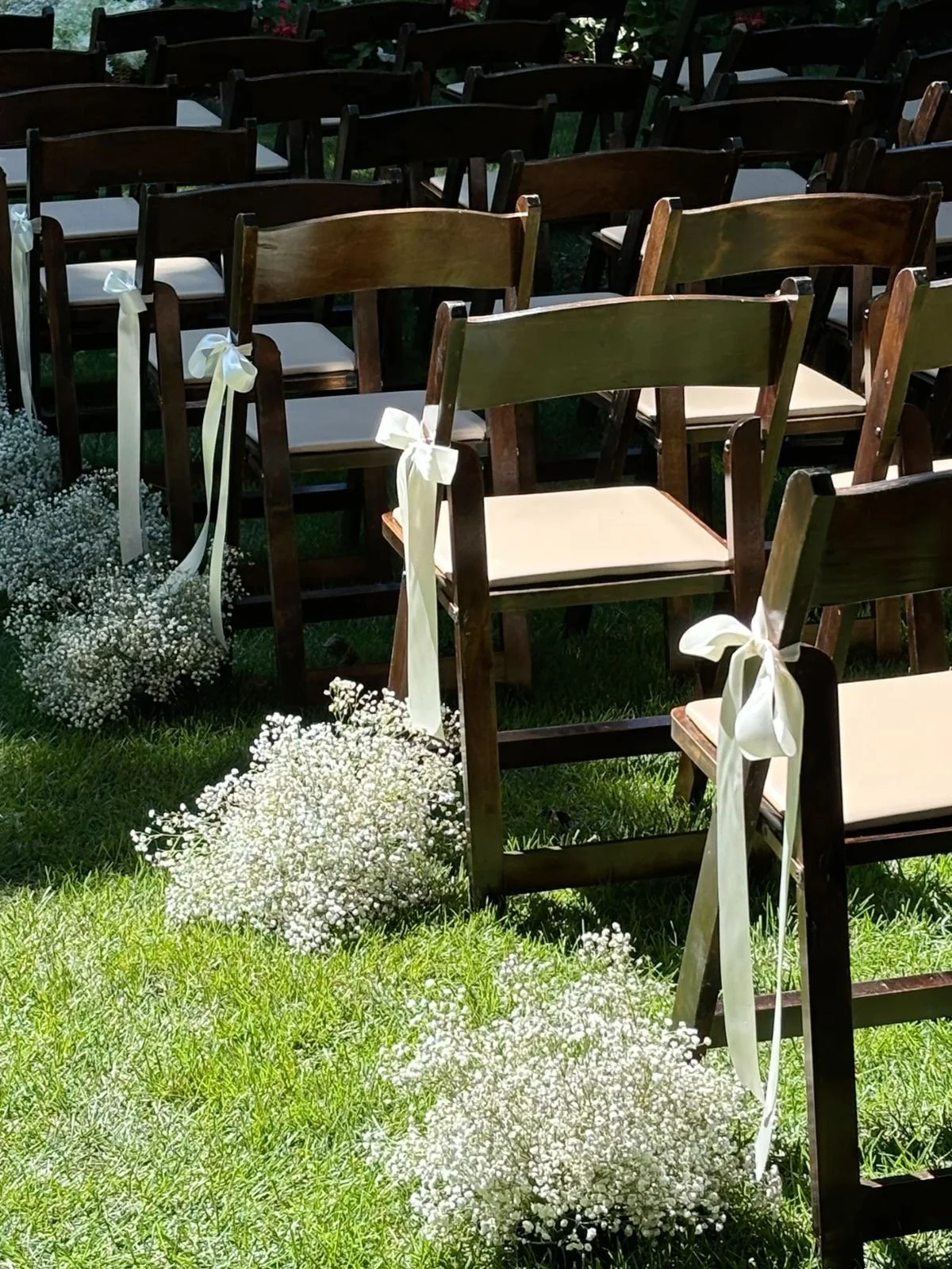 Our 60” foldable wooden rounds comfortably seat 8 people per table!